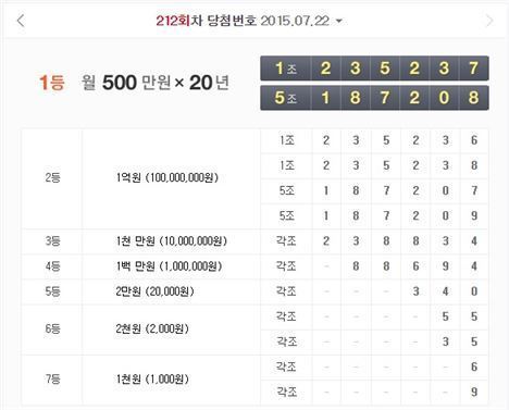 | ▲ 연금복권 212회 당첨번호는?…1등 매달 500만원씩 20년 지급 |
