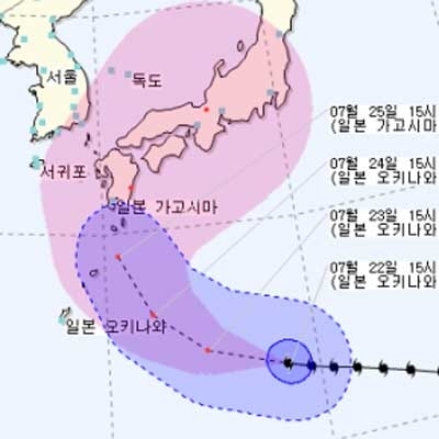 이어 25일엔 오키나와 동쪽 해상을 지나 일본 큐슈의 서남쪽 해안으로 이동할 것으로 전망했다.