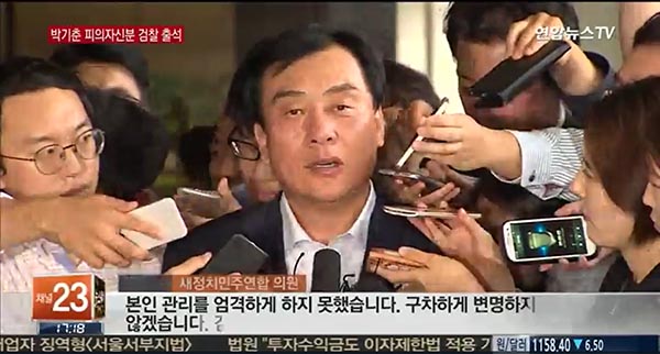 박기춘 의원은 "본인 관리를 엄격하게 하지 못했다. 구차하게 변명하지 않겠다"고 금품거래 사실을 시인했다.