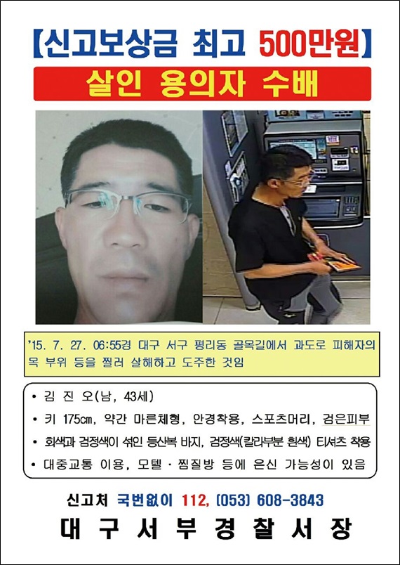 [미디어펜=이상일 기자] 경찰이 대구서 발생한 40대 주부 살해 사건과 관련해 유력 용의자를 공개 수배했다.