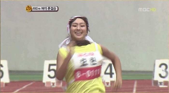 여자 아이돌가수임에도 이미지를 신경쓰지 않고 최선을 다해 경기에 임하는 모습이 인상적이다.
