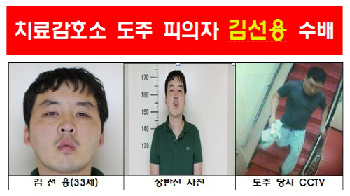 10일 대전지방경찰청에 따르면 김선용은 전날 오후 2시 17분경 대전의 한 병원 7층에서 입원 치료 중 치료감호소 직원을 따돌리고 달아났다.
