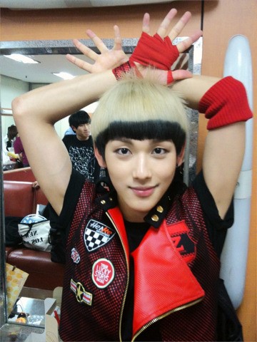 임시완은 사진 속에서 노란색과 검은색이 들어간 특이한 머리스타일을 한체 포즈를 취하고 있다.
