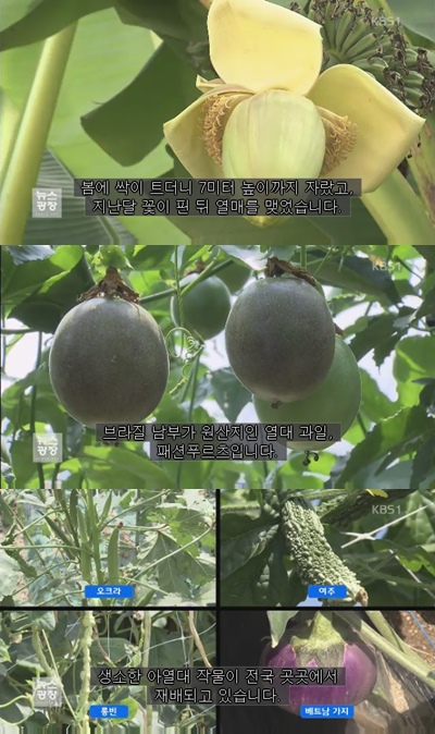 | ▲ (위에서부터 아래로)충북 청주에 열린 바나나, 패션푸르츠, 기타 아열대 작물들./사진=KBS 방송 캡처 |