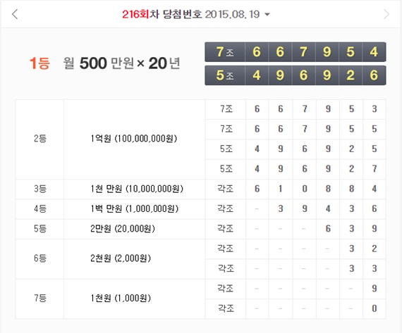 [미디어펜=이상일 기자] 연금복권 216회 당첨번호가 공개돼 화제다.