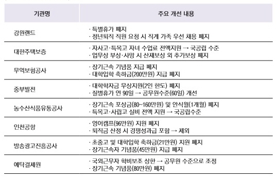 국민 눈높이에 맞지 않는 과도한 복리후생제도도 대폭 정비했다. 과도한 자녀학자금·의료비·휴직 급여·경조사비 지원 등이 폐지 또는 축소됐다.