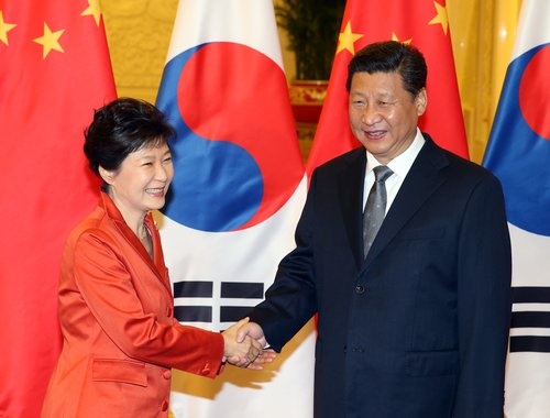 ▲ 중국 전승 70주년 기념행사에 참석하는 박근혜 대통령은 9월2일 시진핑 중국 주석과 정상회담을 열 예정이다. 사진은 박 대통령과 시 주석이 지난해 11월10일 베이징 인민대회당에서 양국 정상회담을 갖기에 앞서 악수를 나누고 있다./사진=연합뉴스