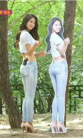 이날 설현은 전국에 판넬 도난 사태를 일으킨 장본인으로서 자신의 판넬 옆으로 서서 포즈를 완벽히 재현했다. 손을 살짝 들어 뒤를 돌아보는 설현의 포즈는 판넬과 100% 싱크로율을 자랑하며 압도적인 '무보정 비율'을 과시했다.