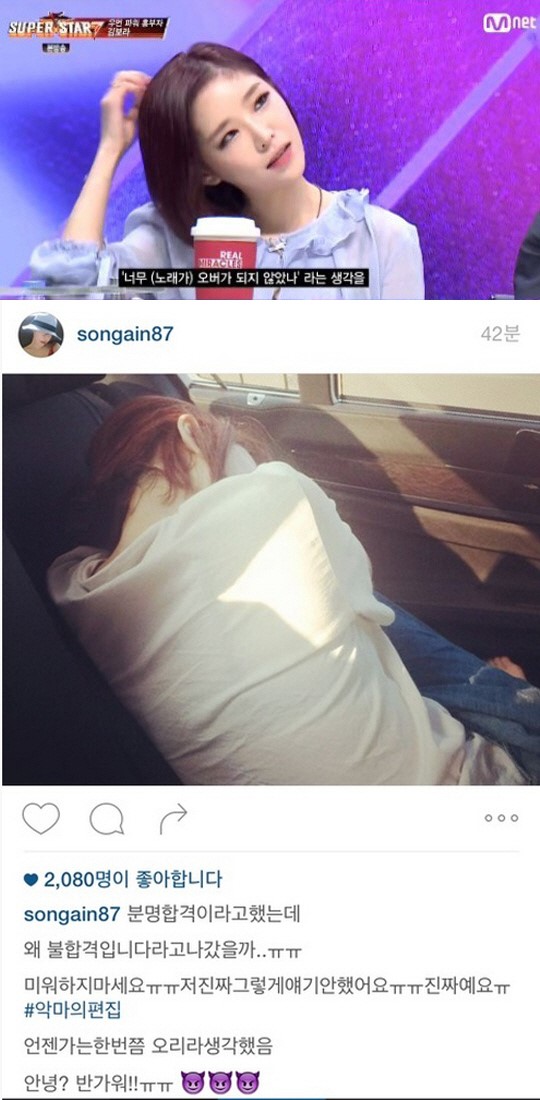 가인은 과거 자신의 SNS를 통해 "분명 합격이라고 했는데 왜 불합격입니다로 나갔을까. 미워하지마세요. 저 진짜 그렇게 얘기 않했어요. 진짜예요"라는 글을 남겼다.