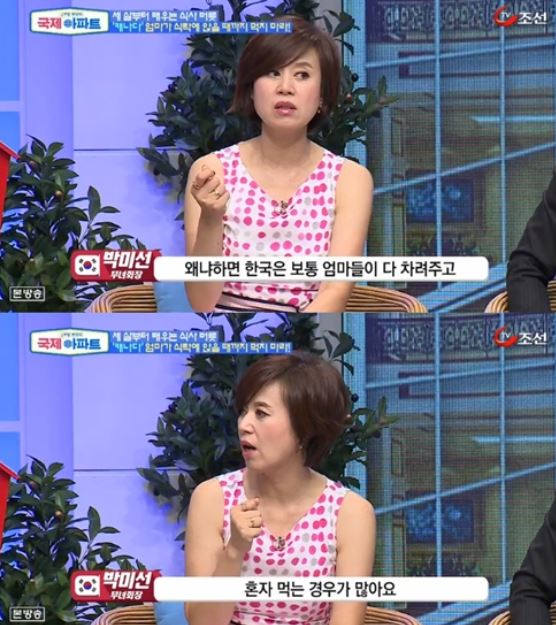 박미선은 9월4일 서울시 상암동 DMC 디지털큐브 3층에서 열린 TV조선 새 예능 프로그램 '글로벌 반상회-국제아파트' 기자간담회에서 자신만의 육아 및 훈육법을 밝혔다.