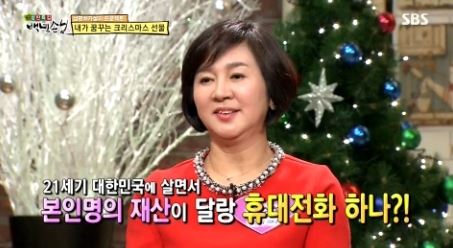 한숙희는 과거 방송된 SBS ‘자기야 백년손님’에서 자신의 이름으로 된 재산이 휴대폰 하나라고 공개했다.
