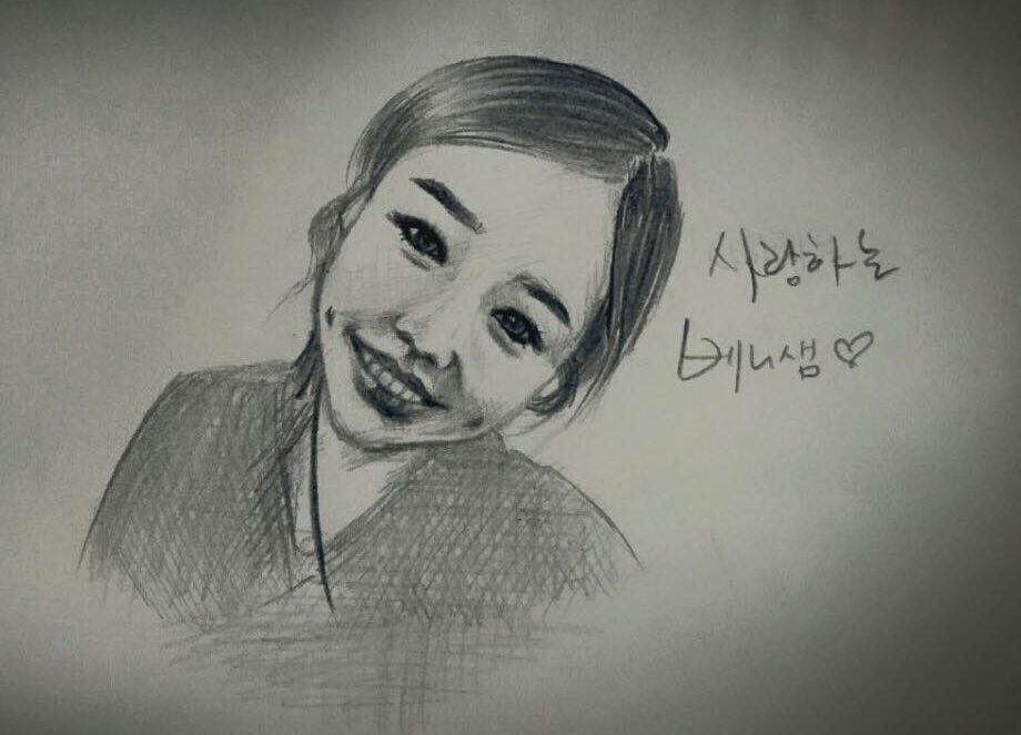 공개된 사진은 베니의 얼굴을 그린 그림으로 베니의 동그란 눈동자와 살짝 튀어나온 광대가 인상적이다.