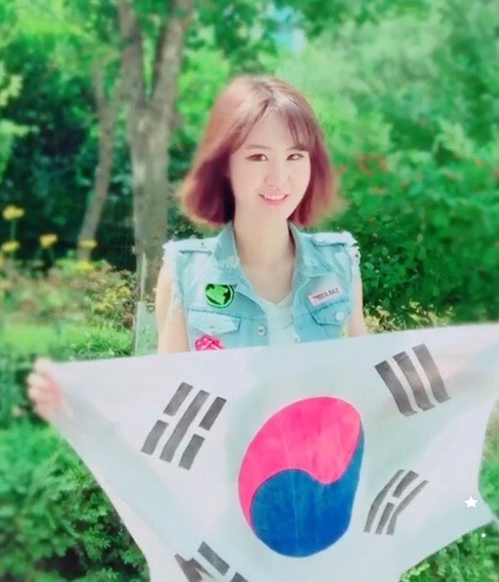 윤수현은 공개된 사진 속에서 태극기를 들고 환한 미소를 짓고있다.