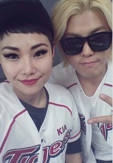 강남은 공개된 사진 속에서 래퍼 치타와 함께 야구복을 맞춰입고 다정한 포즈를 취하고 있다.