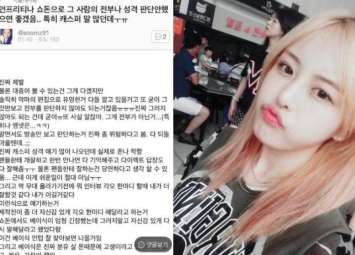 한 누리꾼은 "악마의 편집으로 성격을 판단하지 말았으면 좋겠다"라며 말문을 열었다. 이어 "특히 캐스퍼가 인성논란으로 말이 많다"며 "캐스퍼는 실제로 팬들에게 정성으로 대한다"고 주장했다.