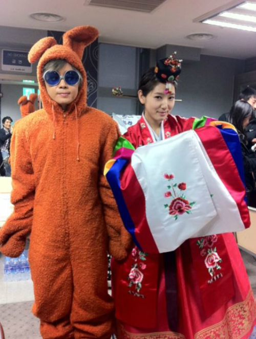 공개된 사진 속 이승환은 토끼 탈로 머리부터 발끝까지 무장하고 이목을 집중시켰다. 특히 옆에 박신혜는 연지를 곱게 찍고 한복을 차려입어 시선을 사로잡았다.