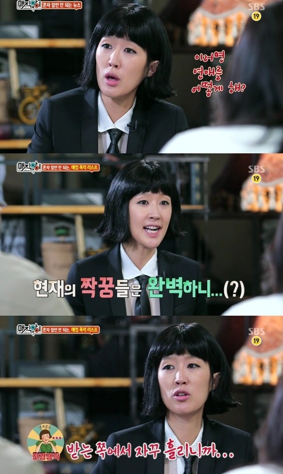 이날 홍진경은 "헤어진 후 만취해서 매달리면 애정폭력이다", "가요 '너를 위해'는 데이트 폭력을 대표하는 위험한 노래이다"등 기발하고 참신한 해석을 내놓았다.