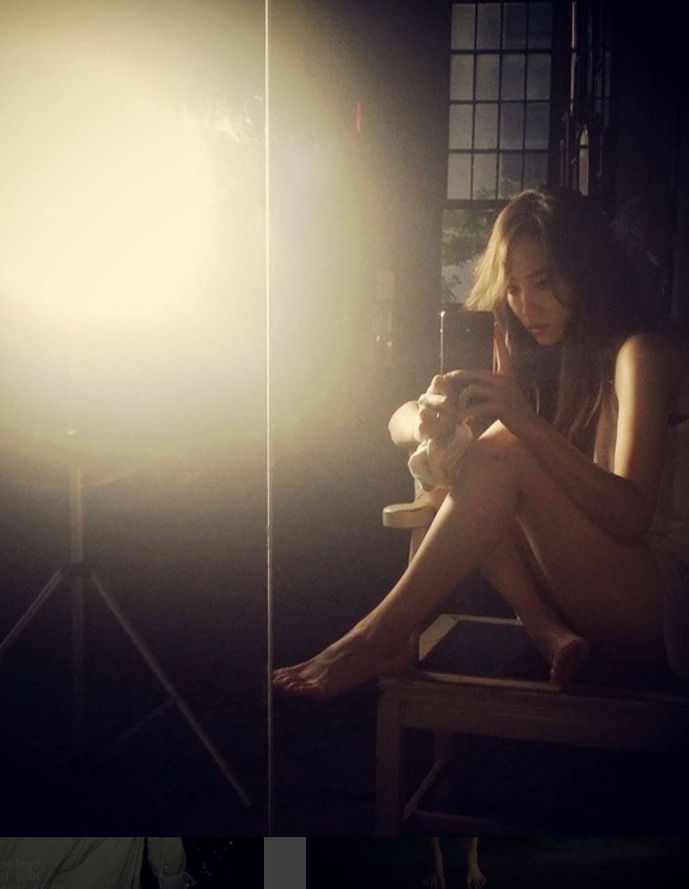 공개된 사진 속에서 그는 번외 티져 영상 촬영을 진행, 강렬한 조명등을 뒤로 하고 거울에 비친 자신의 몸매를 뽐내고 있다.