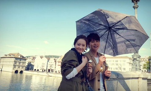게재된 사진은 스위스를 배경으로 고아라랑 규현의 모습을 담고 있다. 사진 속 두 사람은 비슷한 컬러의 아우터를 매치, 함께 우산을 쓰고 다정하게 포즈를 취하고 있어 눈길을 끌었다.