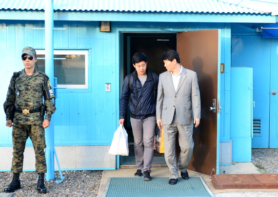 [미디어펜=김소정 기자]지난 4월 불법으로 입북했다가 억류됐던 한국 국적 미국 대학생 주원문(21) 씨가 5일 오후 5시35분쯤 판문점을 통해 송환됐다.