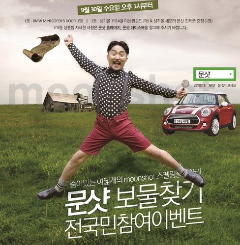 지난달 30일부터 진행된 ‘문샷 보물찾기 전국민 이벤트’는 전국에 숨은 8개의 알파벳(온라인 2개, 오프라인 6개)을 찾아 ‘문샷’ 페이지에 ‘좋아요’를 누른 뒤 ‘페이스북’에 인증샷을 남기는 것으로 누리꾼들의 활발한 참여를 통해 화제가 된 이벤트이다.