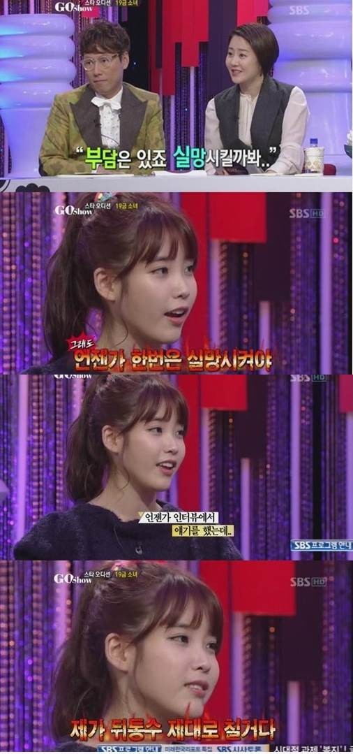 이어서 아이유는 "실망시킬까봐 부담은 있다,그래도 언젠가 한번은 실망을 시켜야한다고 생각한다,제가 팬들의 뒤통수를 제대로 칠거다"라고 말했다.