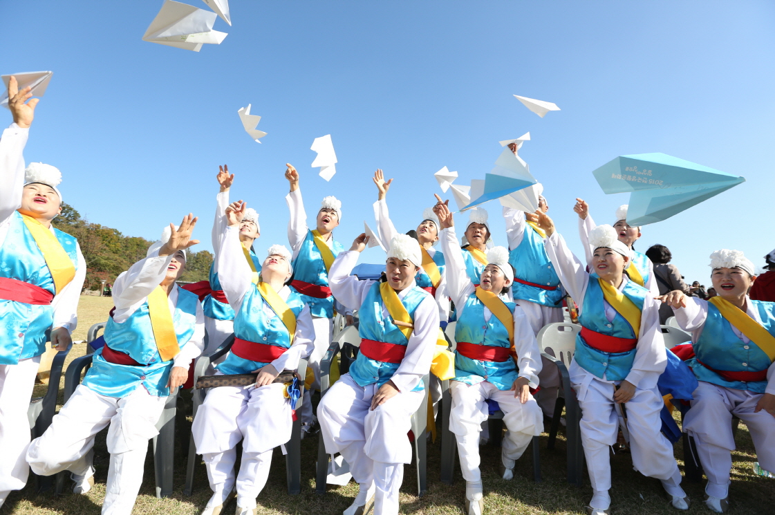 공개된 사진에는 행사에 참가한 동호인들이 전국생활문화제의 성공적인 개최를 기원하며 종이비행기를 날리고 있다.